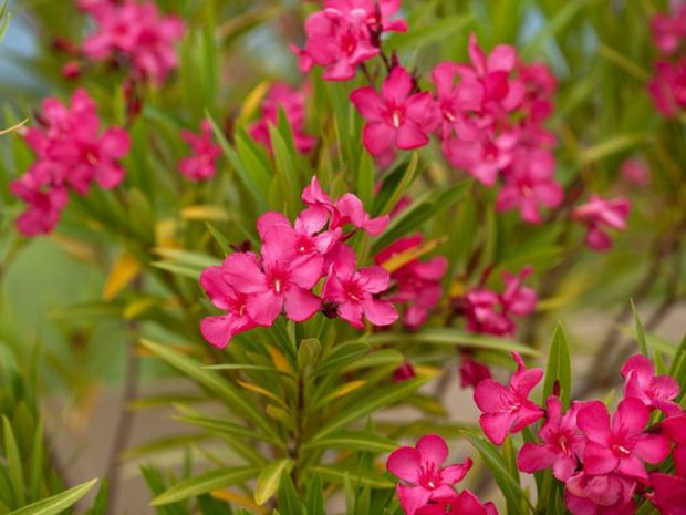 Olijander cvjeta u bijeloj, rozoj i crvenoj boji. Veoma je lijep i djeca ga često beru. Međutim, dovoljan je samo jedan list da bi se dijete otrovalo. Simptomi trovanja uključuju drhtavicu, usporene otkucaje srca i pospanost.