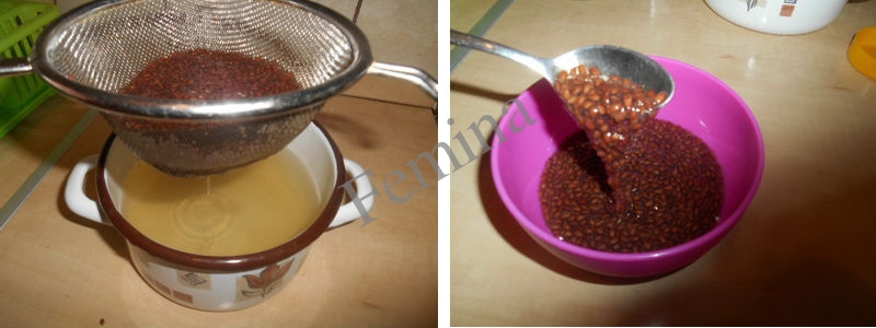 Uveče uraditi sljedeće: 3 kašike lanenog sjemena preliti sa 1 litrom ključale vode. Ostaviti da odstoji u toku noći. Najbolje je koristiti termos. Ako ga nemate, koristiti šerpu sa poklopcem. Ujutru procijediti. Dobićete malo gušći (sluzav) napitak.