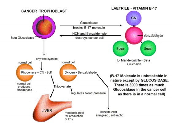 Zahvaljujući velikoj koncentraciji enzima beta-glukozidaza vitamin B17 je izrazito smrtonosan za stanice raka, dok za ostale zdrave stanice nije toksičan.