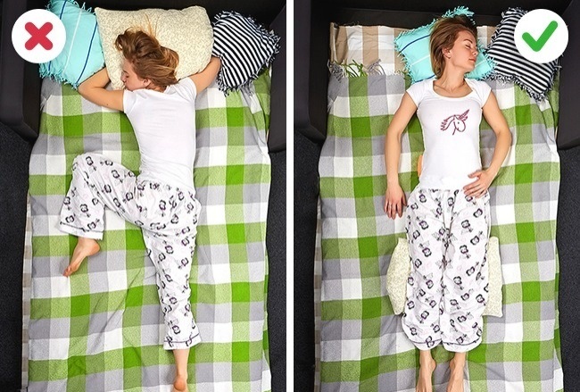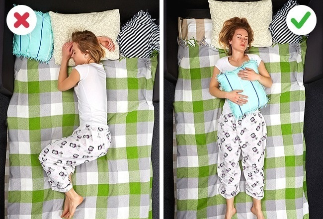Ako volite da spavate na stomaku, postavite jastuk ispod stomaka i karlice. Ako volite da spavate sa strane, najbolje je da budete u fetalnom položaju. Blago povucite noge ka grudima, sa prirodno zaobljenim leđima.
