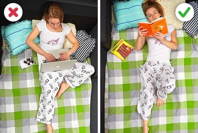 Teško je otići u krevet bez telefona ili računara, ali bi trebalo. Ovo vrlo pomaže ako želite da zaspite. Svjetlost ekrana utiče na ciklus spavanja. Izbjegavajte konzumiranje kofeina, energetskih i gaziranih pića, crnog čaja i čokolade – bar noću, 6 sati prije spavanja. Vježbajte ujutru i posljepodne, jer pomaže cijelom tijelu i poboljšava cirkulaciju krvi.