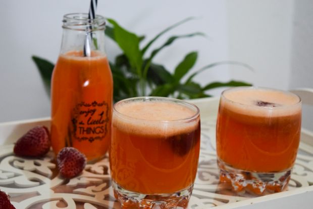Uzmite 2 čaše vode, jednu malu kašičicu sode bikarbone, malo jagoda i nešto lišća nane. Operite ih, potom zajedno sa vodom i sodom stavite u blender, Dobijeni sok popijte po jednu čašu dnevno. Naravno, ne pretjerujte