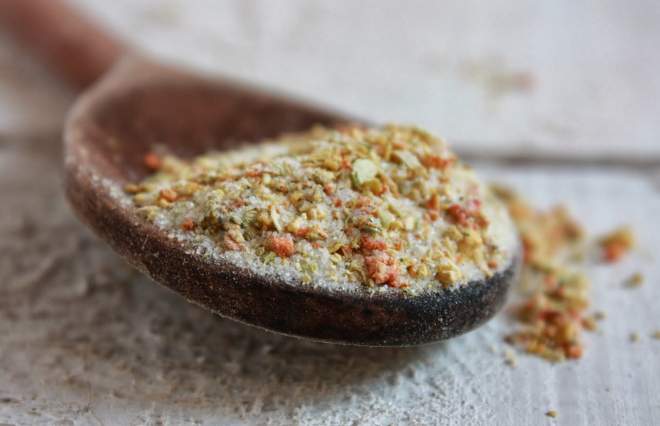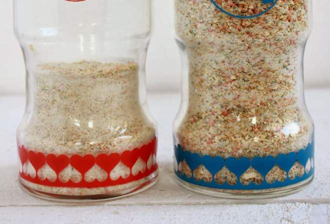 Povrće sa soli dodatno usitnite u blenderu ili u mlincu za kavu. Ja sam isprobala i jedno i drugo, evo na slici dolje: