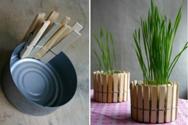 Umjesto da vam terasa ili bilo koja druga prostorija budu ispunjene bezličnim i običnim saksijama, upotrebite drvene štipaljke da biste napravili potpuno nov izgled.
