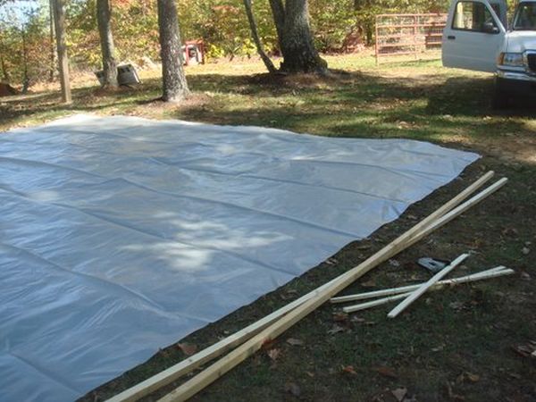 Isjekao je plastičnu foliju za “tijelo” plastenika i pripremio dugačke letve koje će je pridržavati po ivicama (slika 17).