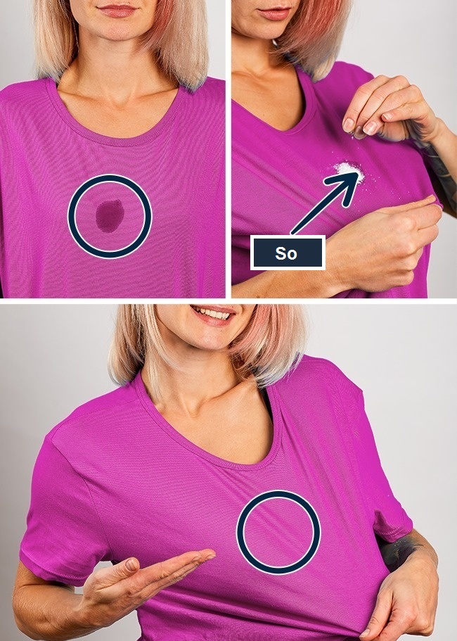 So će upiti većinu masnoće. Pospite, malo sačekajte, pa otresite. Velike mrlje ćete lakše oprati, a male će jednostavno nestati.