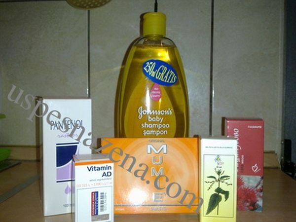 Prerućite dječiji šampon u praznu litarsku ambalažu i dodajte sve sastojke: vodeni rastvor pantenola sa mumijo, kapi od koprive, AD kapi, ricinusovo ulje. Sve dobro promiješajte i možete koristiti.