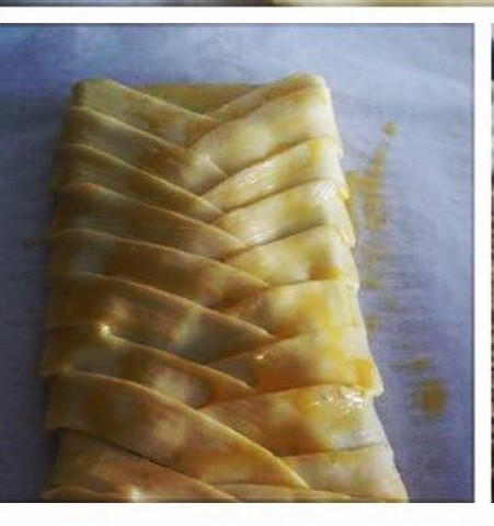 - Iseijcite lisnato tijesto i stavljajte ga preko čokolade, na način, prikazan na slici