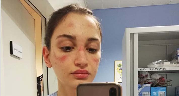 Alessia Bonari (23), medicinska sestra iz Milana koja radi u bolnici Groseto, na Instagramu je objavila selfie na kojemu se vide ožiljci na njenom licu od nošenja zaštitnih maski.