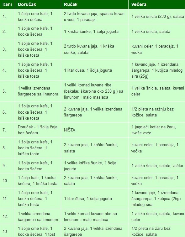 - Dijetni plan se mora pratiti tačno 13 dana, ni manje ni više i kao što je napomenuto mora se pratiti kako je naznačeno – nema varanja;