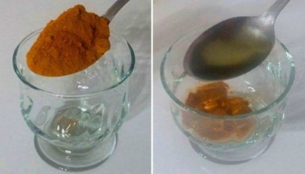 Pomješajte 1/4 kašičice kurkume sa pola kašičice maslinovog ulja. Pri tome dodati veći prstohvat svježeg crnog bibera. Ova tri sastojka pomješajte u šolji.
