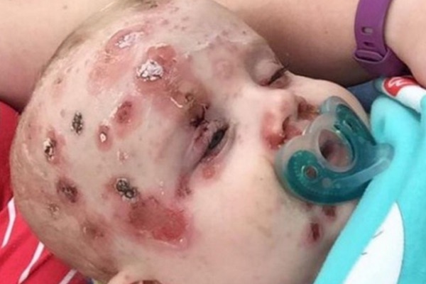 Kejli Burk je podijelila na svom fejsbuk profilu fotografiju svoga 11 mjeseci starog sina Elija, koji je bio premlad da bi dobio vakcinu, prekrivenog zastrašujućim krastama i plikovima od bolesti koja je prouzrokovala sekundarnu infekciju u njegovom malom tijelu.