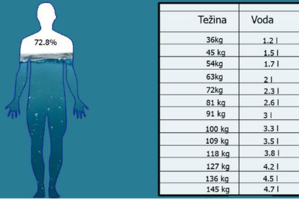Koje količine VODE trebate piti u odnosu na vašu kilažu – Pogledajte tabelu!!!