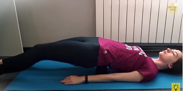 Lezite na leđa, opružite cijelo tijelo, a ispod donjeg dijela leđa stavite peškir ili ćebe. Ostanite u tom položaju 5 minuta. Osjetićete kako se cijelo tijelo isteže, a bolovi postaju manjeg intenziteta.