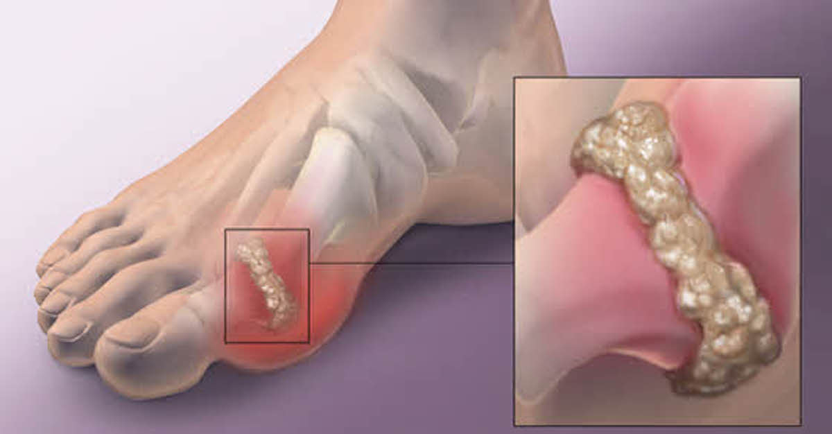 Nastali oštri kristali talože se u zglobove, najčešće u stopalima tj. području nožnog palca i uzrokuju jaku bol.