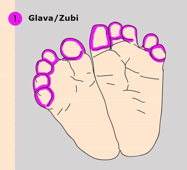 Bebe često zabole glava i zubi. Kad primetite da dete ima bolove, izmasirajte mu vrhove prstiju na nogama! Možete ga masirati i dok spava.