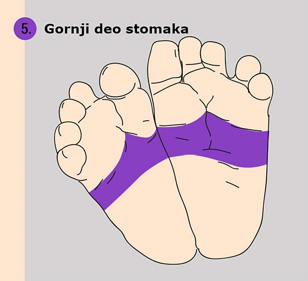 U slučaju zatvora, gorušice i lošeg varenja, masirajte deo između sredine i jastučeta stopala.