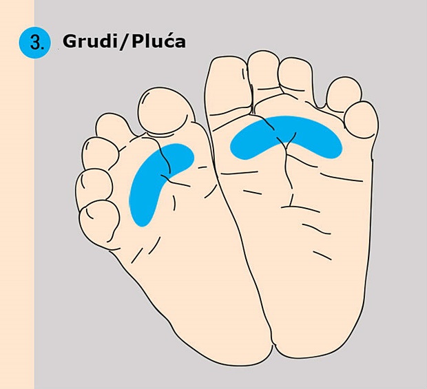 Kada bebu muči bronhitis, masirajte deo stopala ispod prstiju, a iznad svoda tabana. Masirajte nežno, kružnim pokretima, da biste joj olakšali disanje i zaustavili kašalj.