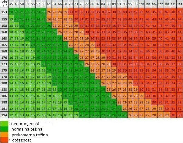 Postoji tabela odnosa visine i težine, uz pomoć koje ćete utvrditi da li imate nekoliko suvišnih kilograma, ili pak treba da dobijete na težini, kako prenosi uspesnazena.com