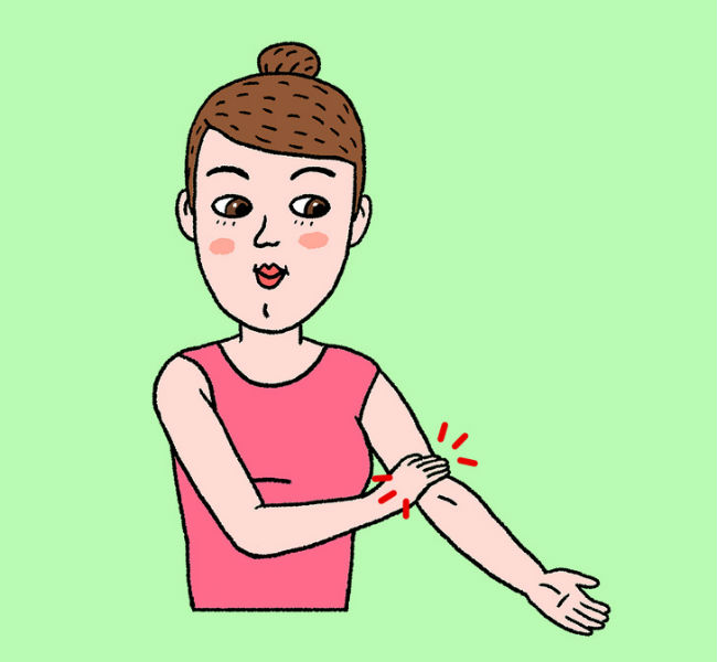 Ispružite jednu ruku i tapkajte odozgo nadole, na sve četiri strane: podlaktica (spoljna i unutrašnja), ramena (spolja i iznutra). Posebno se zadržite na prevoju lakta. U svakoj tački po 25 puta. Isto ponovite na drugoj ruci.