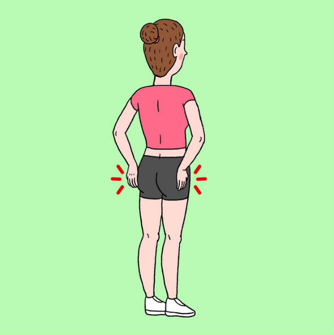 Stanite pravo. Dlanom ili pesnicom leve ruke tapkajte celu desnu stranu leđa. Pokušajte da dosegnete što dalje. Zatim desnom rukom tapkajte levu stranu leđa (15 serija svakom rukom). Zatim levim dlanom ili pesnicom tapkajte po levoj strani zadnjice, a onda desnom – po desnoj (50-100 puta sa svake strane).