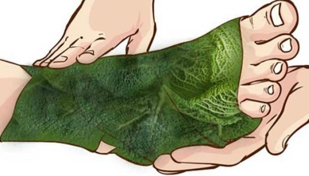 Kada osjetite bol, stavite smrznuti kupus na pogođeno mjesto, zamotajte noge s nekim peškirom i pustite da odstoji. Lišće će ublažiti i olakšati upalu. Možete izvući višak tečnosti iz nogu na isti način. Ohladite kupus u frižideru. Umotati otečene noge i ostaviti 30 minuta.