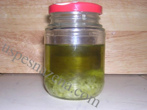 - Na kraju ćete dobiti ulje bijelog luka, koje treba da se procijedi kroz 3-4 sloja gaze ili dvaput kroz sitnu plastičnu cjediljku.